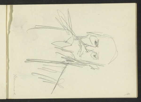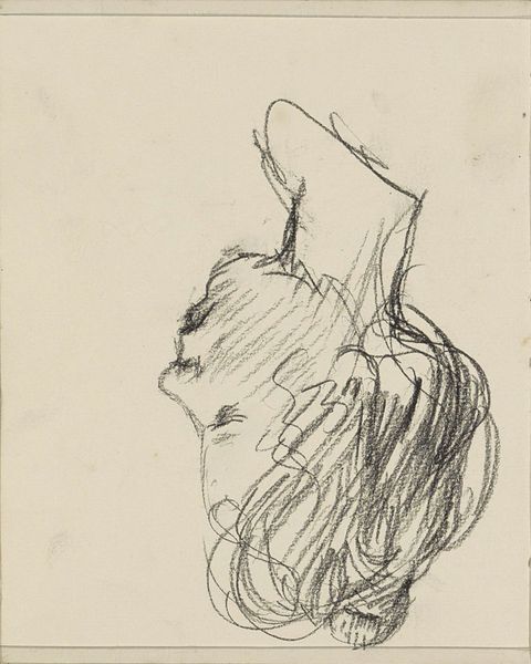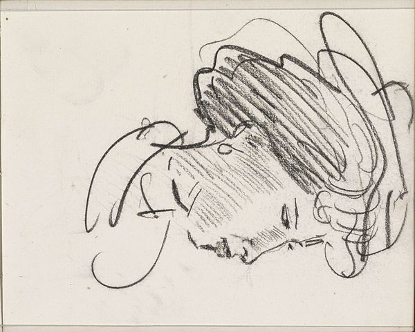 Editor: Here we have Isaac Israels' "Vrouwenhoofd," a graphite drawing done sometime between 1886 and 1903. It’s currently housed in the Rijksmuseum. It looks like a quick sketch, almost a doodle. What do you make of it? Curator: It’s a fascinating glimpse into Israels’ working process. The hasty marks, the smudging of the graphite—they all point to a rapid execution. But what kind of labor is actually visible? Look closely, it seems almost as if a discarded item now becomes viewed for artistic merit. It almost allows the viewer a peek behind the artistic curtain, so to speak. Editor: So, the value comes from seeing the artist's process, rather than the finished product? Curator: Precisely! Think about the social context. Impressionism was challenging the established academic system. Artists were moving away from idealized representations and towards capturing fleeting moments. Even Israels choice of materials – a relatively inexpensive graphite rather than paints. Editor: It's like he’s elevating the everyday materials, in line with everyday subject matter. Curator: Exactly! Is he making commentary on class as well through doing this? To really understand "Vrouwenhoofd," you have to look beyond the simple image and delve into the materials, the method, and what Israels is doing with them. Editor: So, by valuing this "unfinished" sketch, we're also re-evaluating artistic skill and labor itself. Thanks! This has completely shifted my understanding. Curator: My pleasure! Looking at the art's physical existence lets you think of a different meaning and cultural history.