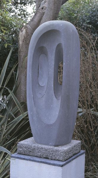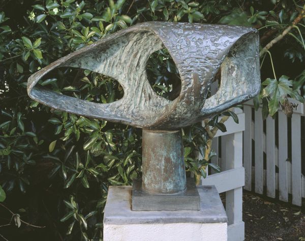 Editor: Here we have Barbara Hepworth's "Garden Sculpture (Model for Meridian)." I’m struck by how the curving forms seem to defy gravity and create a sense of movement. What do you see in this sculpture? Curator: Indeed. Note how Hepworth employs negative space to activate the surrounding environment. The interplay of concave and convex surfaces directs the viewer's gaze, creating a dynamic visual experience. The rough texture also contrasts beautifully with the sleek, curved shapes, don't you think? Editor: Absolutely. The texture adds an element of earthiness to the otherwise smooth and flowing forms. I hadn't considered how the empty spaces contribute so much to the sculpture’s overall effect. Curator: Paying close attention to these formal elements reveals how Hepworth achieves a profound sense of balance and harmony, wouldn't you agree?