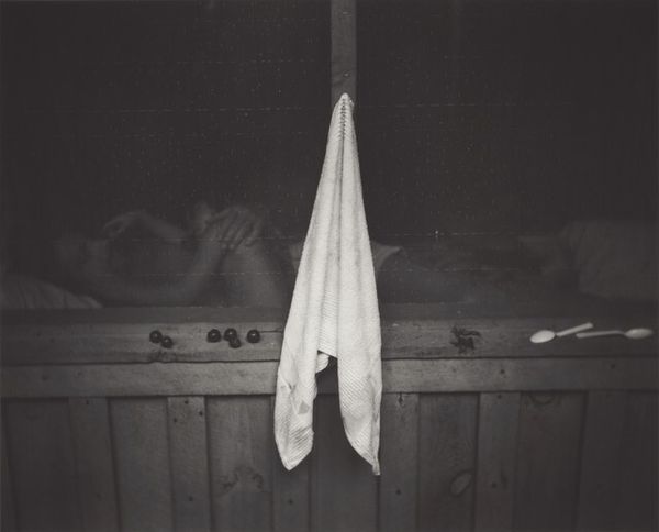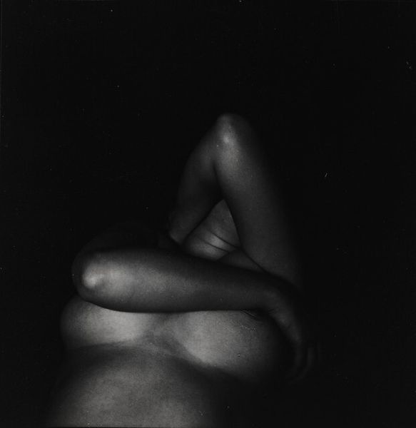 Editor: We’re looking at Harry Callahan's "Eleanor, Michigan," a gelatin-silver print from 1953. The contrast is striking, with areas of near-total darkness alongside almost blinding light. There’s a figure, I think, near what looks like a window or opening to the outside. What strikes you when you see this piece? Curator: The material reality is what grounds this piece. The gelatin-silver print itself is crucial. It was an industrial process, right? Callahan buying the materials, engaging in darkroom labor… This process enabled a specific kind of reproducibility, a potentially wider distribution of this image. The "art" isn’t just in the scene he chose but in his engagement with these manufactured goods. What impact do you think the gelatin-silver printing has on how we read this work? Editor: That's interesting – it makes me think about how accessible photography was becoming, or trying to become, compared to painting or sculpture. And maybe the black and white format highlights that reality even more? Because we often perceive B&W as more documentary or “real.” Curator: Exactly! The material choice speaks to an industrial mode of seeing, where the indexical link to reality – however mediated – becomes paramount. Callahan is intervening within those systems. The fact that it’s his wife Eleanor...he’s domesticating and personalizing an industrial mode of production. Labor, too. He's engaging in very particular kinds of labor here, both in the darkroom and by creating images. And labor's implicit in Eleanor’s role, right? Wife, model, muse… Editor: I see what you mean. Considering the labor and materials really changes how I look at this photograph! Thank you for sharing that perspective. Curator: My pleasure. Hopefully, now you can look at many photographic artworks through that lens!