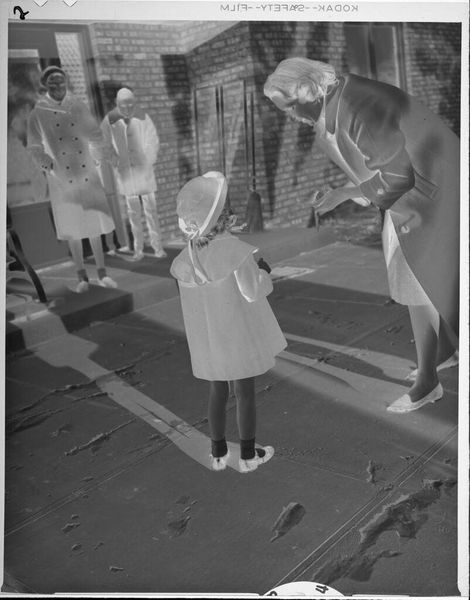 Editor: This photograph by Jack Gould, titled "Untitled (four women, one pushing baby carriage)," presents such a stark contrast of light and shadow. It feels almost dreamlike. What stands out to you? Curator: I see a focus on the social fabric of the time, captured through the very materiality of photography. Consider the labor involved in producing this image, from the photographer to the developing process. What economic realities are reflected in their clothing and this social setting? Editor: That’s a fascinating point. I hadn’t considered the economic factors so directly. Curator: How might the mass production of photographic materials influence its accessibility and democratize representation? Editor: It’s like the photograph itself becomes a commodity, reflecting broader patterns of consumption and social interaction. Thanks for highlighting that! Curator: Indeed. We’ve both gained a deeper insight into the work.