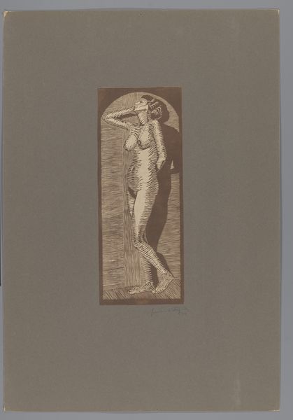 Editor: So, this is Pierre Roche's "Diane au levrier", or "Diana and a Greyhound," created around 1912. It's an ink and pencil drawing. I’m struck by how it evokes classical themes, but there’s also something really dreamlike about it. What do you see in this piece? Curator: Indeed. Diana, the Roman goddess of the hunt, is a potent symbol of independence and wildness. Notice how the artist uses the greyhound—itself a symbol of speed and agility—to amplify her association with the natural world. Do you find anything significant about the muted palette and the use of line? Editor: Well, the tones are soft, almost faded, which contributes to the dreamlike feel. And the lines, while distinct, aren’t harsh. It gives it a delicate quality, perhaps vulnerability? Curator: Precisely. That perceived vulnerability can be misleading. Diana, despite her beauty, was revered for her fierce protectiveness of the forest and its creatures. This gentleness of line could actually be highlighting her connection to, rather than her dominion over, the natural world. What does that say about our understanding of power? Editor: Hmm, interesting. It makes me think about how we often associate strength with dominance, but maybe true power lies in harmony with nature. So the toned paper isn't just a background; it evokes memory and a reverence for nature that we risk losing. Curator: I agree completely. This drawing reminds us that our relationship with nature has been—and perhaps always should be—one of respect, understanding, and recognition of shared vulnerabilities. This drawing has sparked quite a contemplation! Editor: I definitely see it in a new light. I appreciate your help in untangling the rich symbolism here; it definitely adds depth to my initial impression.
