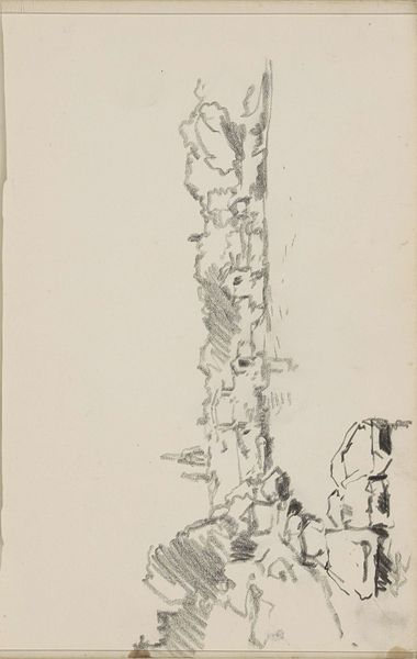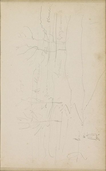 Editor: Here we have Adrianus Eversen’s "Gezicht op een weg", or "View of a Road", dating roughly between 1828 and 1897. It’s a pencil drawing on paper. It strikes me as incredibly sparse; a landscape distilled down to its barest geometric forms. What do you see in this piece, considered from its historical context? Curator: This unassuming sketch speaks volumes about the rise of Realism in 19th-century Dutch art. While the Golden Age celebrated grand narratives and wealth, artists like Eversen started focusing on the everyday. What’s implied when a road becomes a worthy subject, devoid of heroic figures or overt moralizing? Editor: It suggests a democratization of art, maybe? The common person's experience takes center stage. Curator: Exactly. Think about the institutional shifts of the era. The art market was expanding, with more opportunities for artists outside the established academies. Who do you imagine would collect such a drawing, and why? Editor: Perhaps someone interested in urban planning or even a fellow artist studying perspective? It feels very practical. Curator: It highlights the burgeoning middle class with their interest in representing their environment. Eversen’s choice of medium, a simple pencil, further underscores accessibility. It moves away from the extravagant display of artistic skill seen in earlier periods and towards… what? Editor: Something more honest, perhaps? Less idealized? Curator: Precisely! A deliberate move away from the perceived artifice of academic painting. So, while seemingly simple, this 'view of a road' actually reflects profound social and artistic changes. Editor: That's fascinating. I hadn’t considered how the very subject matter could be a statement in itself. I’ll definitely look at Realist landscapes differently now. Curator: Me too, particularly considering how artists negotiate their role within evolving social structures.