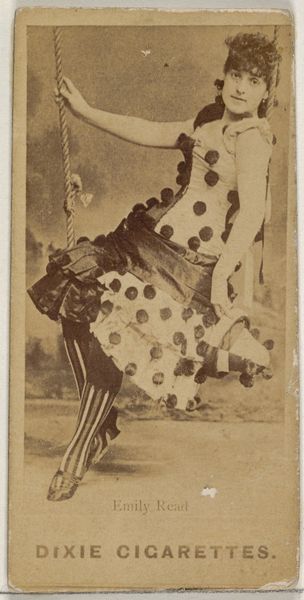 Curator: This intriguing silver gelatin print, approximately 5 by 4 inches, is an Untitled work by Lucian and Mary Brown, found in the Harvard Art Museums. There's no date associated with it. It’s quite striking, isn’t it? Editor: I find it rather unsettling. The reversed tones give it a ghostly quality, and the child's pose, while playful, feels staged. The dog looks like it wants to get away. Curator: Exactly! It’s interesting to consider the Browns’ photographic process. The material itself—silver gelatin—became accessible to a wider public, influencing how families documented themselves and performed roles, like this girl in her cowgirl getup. Editor: The cowgirl outfit speaks volumes. It's a constructed identity, a costume, but also a nod to the romanticized Wild West. The means of image production democratized the projection of such cultural ideals. Curator: Precisely. It’s a fascinating glimpse into how identity is both performed and preserved through accessible technologies like photography. Editor: Absolutely. The material—the photograph itself—becomes an artifact, embodying social narratives and artistic practice.