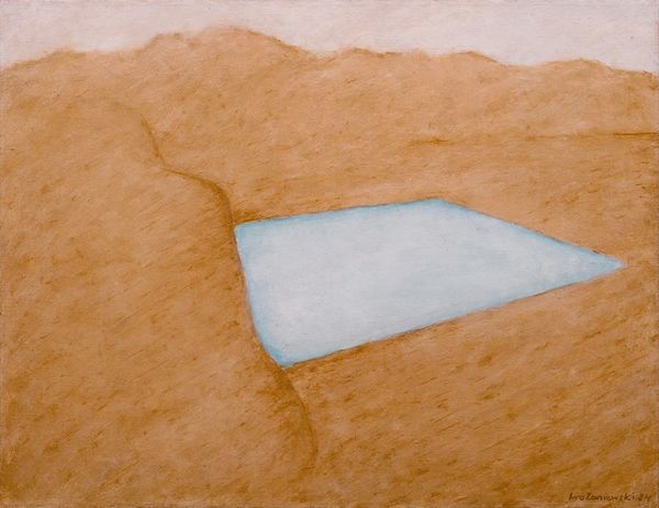 Editor: Here we have Lawren Harris’s "Intimations," painted in 1943 using acrylic on canvas. It’s quite calming. The soft colors and geometric forms create a sense of... weightlessness, perhaps? What do you see in this piece? Curator: The floating geometric forms remind me of mandalas. Given Harris's interest in theosophy, it is easy to consider the symbols' relation to spiritual states. He moved away from representational landscapes later in his career, focusing on these abstract shapes. What emotions do the colours evoke for you? Editor: Mostly a sense of peace, but I wonder if there's more to it than just aesthetic pleasure. Is Harris trying to communicate something specific through these symbols? Curator: The symbols he employs are deliberately ambiguous, allowing for a range of personal interpretations. Consider the repeating shapes, almost mirroring each other – what visual echoes do you observe, and what significance might those connections hold within a wider spiritual or philosophical context? Editor: The mirroring is interesting. There are three main forms in similar shapes… almost like stacked worlds, the material one at the bottom in the stronger colours, up to a pure white one at the center? I wonder if it's about ascension, perhaps from physical to spiritual realms. Curator: An excellent observation! It's likely connected to that yearning for higher consciousness, and the process of transcending earthly concerns during a tumultuous time in world history. There are certainly no hard answers to these paintings. What would you say you’ve taken from our observations? Editor: I learned to look beyond the initial beauty of the painting and think about the deeper symbolism that the artist may have intended. Now I can interpret his shapes beyond their aesthetic, to a complex world of visual and cultural language. Curator: Exactly. Remember that images are imbued with layered meaning over time, through shifting psychological, cultural and historical lenses. This changes how we observe and absorb art, which is incredibly powerful.