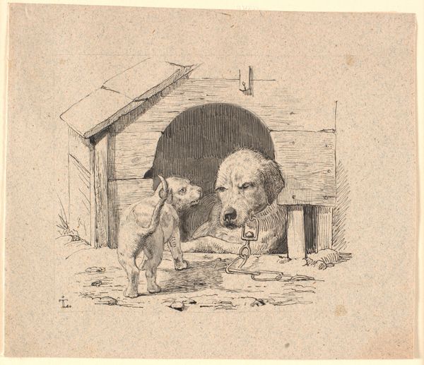 Editor: Here we have Christ Makrenos' "Toy Bank: Mule and Manger," dating from around 1937, rendered in watercolor and colored pencil. It has this charming, almost naive quality to it. What do you make of its simple presentation, especially considering the period it was created? Curator: It sings to me of simpler times, doesn’t it? A folk-art spirit captured in clean lines and honest colors. It's like a memory being gently unfolded. I wonder, do you feel that charm might also mask a bit of economic reflection from the Depression era, maybe hinting at a longing for the basics? Editor: I can see that – a focus on thrift, perhaps. Though the colours also make it feel somehow cheerful, like a little burst of hope in a hard time. Curator: Exactly! And consider the mule itself. Such a humble, hardworking creature turned into something delightful, even aspirational in a way, wouldn't you say? Are we seeing work and labour, redefined by artistry? Editor: Definitely, I hadn't thought of it that way before! And now I am curious about the duplicate artwork in the back. What are those figures meant to be? Curator: That's interesting because to me, those secondary elements might add layers of symbolic density by creating different viewpoints; did the artist maybe intend them as artistic variations? Do you think there is more in that composition than just surface aesthetics? Editor: Perhaps a playfulness then, maybe experimenting with depth? Curator: You got it. Makrenos reminds us that there is much more to a coin bank. Editor: I have a much better view of it now, it all helps bring the art to life.