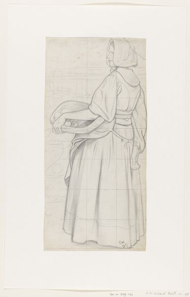 Editor: We're looking at "Stehendes Mädchen, die Hände in die Hüften gestemmt," a pencil drawing from around 1771-1772 by Georg Melchior Kraus. It depicts a young woman standing with her hands on her hips, and something about her pose reads as defiant. What do you see in this sketch? Curator: Well, this seemingly simple sketch speaks volumes about the changing social landscape of the late 18th century. It's not just a casual drawing, but reflects evolving ideas about class and representation. Notice how Kraus portrays her. Do you find that her dress is a depiction of a certain working class? Editor: It does appear rather modest compared to typical aristocratic portraits. Almost…genre-like. Curator: Exactly. Kraus is placing emphasis on the everyday person. What's really fascinating is understanding how this portrayal challenged the norms of artistic patronage and representation at the time. Aristocrats commissioned portraits celebrating power and status; what do you think it means when artists started looking elsewhere, to the ordinary for their subjects? Editor: It suggests a shift in artistic values, perhaps reflecting growing social consciousness or even critique. This also makes me wonder how the sketch functioned within Kraus's broader artistic practice. Curator: A fantastic point! Sketches like these weren't just preliminary studies but functioned as independent works capturing the spirit and mood of the subject, circulated among collectors who valued their spontaneity and authenticity. This helped him to build his reputation. It served a social function beyond just the visual itself. Editor: That provides a lot more context! I went into this only thinking it captured the energy of the subject. Curator: It’s a testament to how art, even a simple sketch, can become a fascinating window into understanding broader historical shifts. It’s taught me the role art played during times of shifting power.