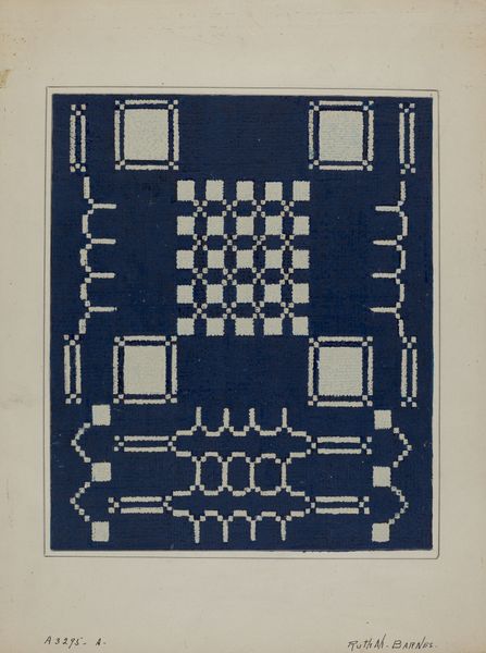 This section of a coverlet was made by Cornelius Christoffels, most likely in the early 20th century. We can see the material and the pattern that has been woven using a traditional weaving process, a craft that has been passed down through generations. The deep blue and white yarns create a striking contrast, emphasizing the geometric patterns that dominate the design. The texture of the woven fabric invites a tactile experience, a reminder of the human hand involved in its creation. The process of weaving involves interlacing threads to create a cohesive textile. This work represents countless hours of skilled labor, meticulously constructing the pattern thread by thread. The cultural significance of coverlets extends beyond their functional purpose; they often carry stories, traditions, and personal meaning. In understanding this artwork, we are challenged to look past mere aesthetics and consider the labor, skills, and cultural traditions embedded in the piece. It is through this lens that we can fully appreciate the artistry and meaning woven into this textile.