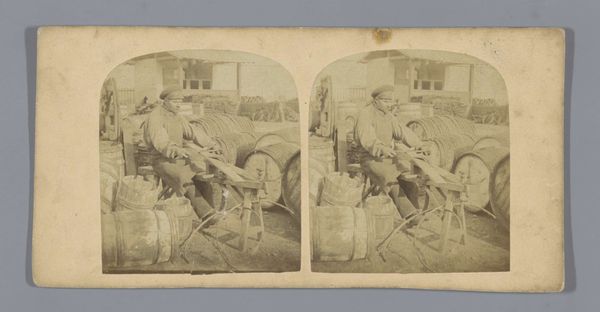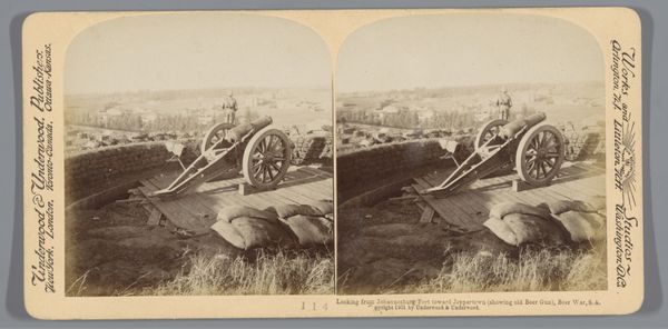 Editor: Here we have a photograph from 1901, entitled "British soldier on a cannon in Pretoria, June 4th". It's a gelatin silver print, capturing a soldier from behind, kneeling by a large cannon. The scene feels quite stark and immediate, a bit like peering into a moment frozen in time. What catches your eye about this image? Curator: What a moment to capture, literally looking down the barrel of history, eh? I find myself wondering what he’s thinking, our khaki-clad protagonist. Is it pride? Trepidation? Boredom? Probably all three in rotation. The photographer, likely complicit in colonial narratives, perhaps never paused to ponder *his* perspective. Note also the stark realism. It’s not posed in the typical, glory-laden way we often see war depicted. The grit, the plainness…almost unsettling. Makes you wonder about the contrast with idealized war paintings of the era. Editor: It definitely feels like a more human and less glorified portrayal of warfare, I can see what you mean. But if the photographer *was* complicit, does that make it propaganda? Curator: Good question! I don't know, actually. Art exists, coexists, transcends… or even contradicts its intent. To me it looks like something stuck, undigested – a nation swallowing another’s resources with an uneasy stomach. What does it say to you? Editor: I’m left wondering about all the untold stories. It makes me think about the complexities of history, you know, beyond the official narrative. Thank you for pointing that out, it gave me something to think about. Curator: My pleasure! Isn’t it fabulous, that a sliver of silver halide and gelatin can unlock so many narratives!