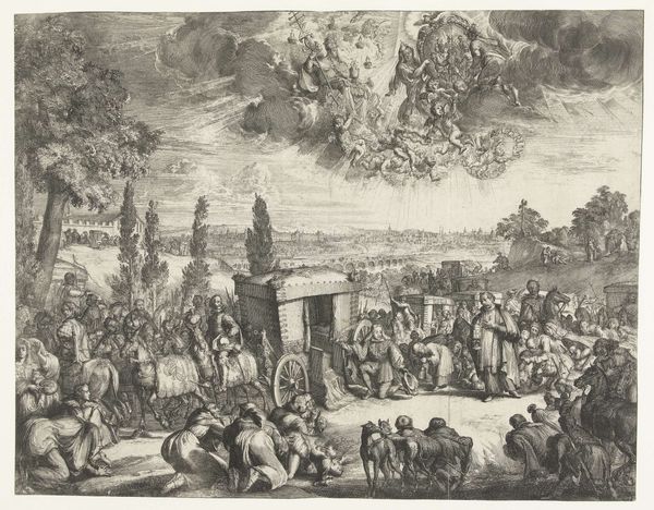 Willem van Swanenburg created this print, around 1610, showing a village fair. Prints like these offer a glimpse into the social life of the Dutch Republic. The image shows the boisterous energy of a village kermis, a traditional fair. But, beyond the revelry, it hints at the social fabric of the time. Note how Swanenburg uses the composition to include different social groups, from the peasants dancing in the foreground to the wealthier figures observing from a distance. The architecture, too, shows us the layout of a typical Dutch village with its church, houses, and temporary market stalls. To truly understand this work, look into the history of Dutch printmaking, the role of fairs in community life, and the social dynamics of the period. Prints like these are valuable historical documents. They reflect the values, beliefs, and social structures of their time.