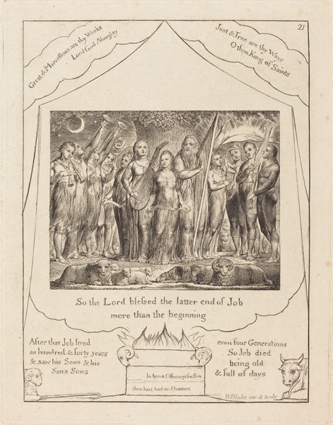 This print was made by William Blake, who lived between 1757 and 1827. Though trained in the art of engraving, he rebelled against its conventions. Blake developed a unique method that he called "illuminated printing," using etching to combine text and image on a single plate. Note the density of lines, achieved by repeated biting of the metal in acid. He was a master printmaker, but did not intend for his prints to be editioned in a conventional way. Each copy was individually colored by hand, making every impression unique. Blake's technique reflected his radical social views. In a time of mass production, Blake favored the handmade, and retained full control of his artistic process. This print, with its powerful depiction of suffering, is a testament to his belief in the power of individual creation. In Blake's view, the hand was the most important tool of all.
