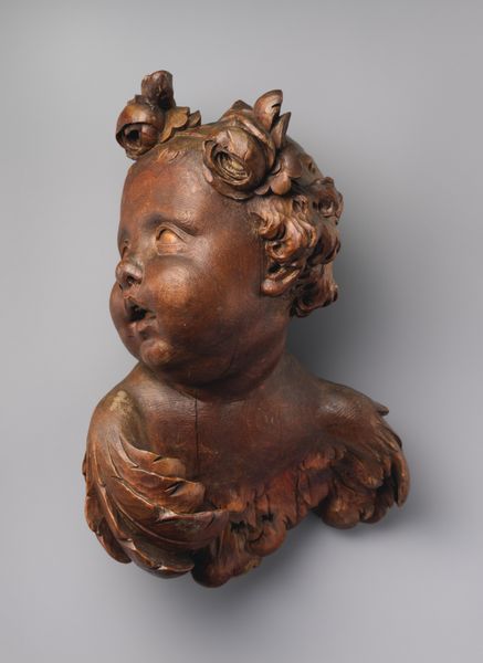 Curator: What a compelling piece! Here we have Hendrick de Keyser the Elder’s wood relief carving, dating from about 1615 to 1620, entitled *Screaming Child, Stung by a Bee*, currently residing here at the Rijksmuseum. The immediacy of the child’s distress really leaps out, doesn't it? Editor: Absolutely, the raw emotion is quite something. My first impression is of the sheer craft of the work. The artist really knew how to work with wood to get such texture and expression; I am particularly drawn to the details of the carved hair and the depth of the screaming mouth. Curator: Indeed, and considering the broader history of childhood depictions, what statements do you believe that this work could have made during its own time? Child figures were, and sometimes are still are, idealized as these passive, perfect, almost cherubic beings—but to show an artwork of pain… Editor: It speaks to a cultural shift towards realism, doesn’t it? Moving from pure symbolism to capturing the unvarnished realities of the life. The materiality reinforces this for me, that carved wood roots this piece within the physical world of production and objecthood rather than elevated iconolatry. It brings childhood down to earth. Curator: Precisely! What strikes me most, viewing the child in relation to contemporaneous societal narratives, is the way in which vulnerability is captured; it almost pushes back against accepted ideals of childhood innocence as purely "cute" or delicate. It suggests children had experiences which should be legitimized and regarded more realistically than idyllically. Editor: And I wonder how this piece would have functioned in its original setting. The texture of the carved surface; one almost wants to touch it, run a hand over the undulating surface and the deep carved interior of the mouth to understand what it truly must've taken to manifest so starkly the immediacy of that suffering. Curator: Looking at this artwork forces us to confront and unpack our perceptions of both children, parenthood, and larger societal roles. Editor: I concur; analyzing art through the lenses of materials and the act of creation reveals deeper understanding. The agony immortalized by such intense and demanding labor underscores how powerfully de Keyser's art spoke.
