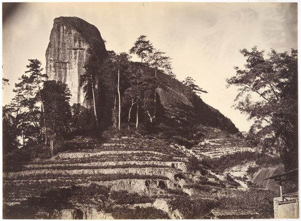This is "Hisui Peak," a captivating albumen silver print made by Lai Fong, a prominent Chinese photographer, in the late 19th century. Fong operated in a treaty port, against the backdrop of China's interactions with the West, a period marked by both cultural exchange and colonial pressures. As one of the few local photographers, Fong catered largely to Western clientele, offering picturesque views of the Chinese landscape, like this one, which simultaneously catered to and shaped orientalist expectations. While Fong's work served the tourist gaze, it also subtly asserted a Chinese perspective, influencing how China was seen, both abroad and at home. "Hisui Peak" captures a scene of serene grandeur, inviting viewers into a landscape imbued with cultural and historical significance. The image serves as a powerful reminder of the complexities of cultural exchange during a time of colonial encounters, offering a nuanced perspective on identity, representation, and the power of the photographic lens.