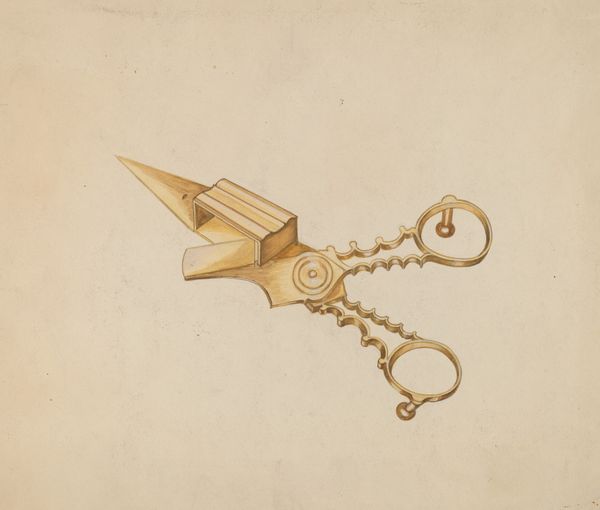 This drawing, Rattle, was made by Michael Fenga sometime in the 20th century with graphite and colored pencil. The metallic grey and orange palette really sings. There's a real sense of careful looking, but at the same time, the hand of the artist is very present in the work. I'm really drawn to the way Fenga renders the rattle as an almost scientific diagram, like a tool in an instructional manual. The lines are precise and controlled, and it's like they are revealing the object to us. Note the orange section at the end of the rattle, which appears softer than the more mechanical areas of the work. This adds a touch of softness, a human element. The whole piece makes me think of Joseph Cornell's boxes, or the meticulous drawings of Hilla and Bernd Becher. The real art is in the way Fenga invites us to really see the world around us, one rattle at a time.