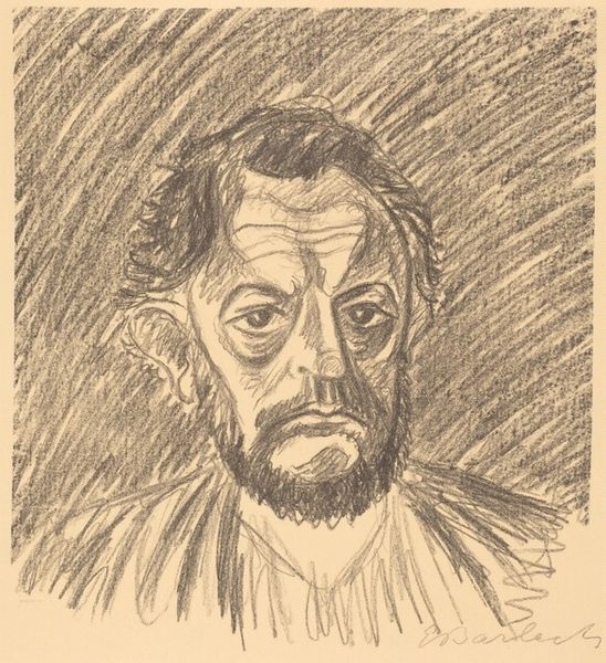 Editor: Here we have Pyotr Konchalovsky's 1919 charcoal drawing, "Portrait of the historian Nikolai Alexandrovich Geynike." It's interesting to me how the heavy shading seems to give this figure a brooding, almost melancholic air, don't you think? What story do you think the artist is trying to tell? Curator: Melancholy, yes, perhaps a hint of fatigue, which I find perfectly understandable, given the historical context – Russia in 1919! The rapid, almost frantic charcoal strokes evoke a sense of urgency, reflecting a society in flux, in the throes of revolution. Imagine Konchalovsky, capturing not just Geynike's likeness, but the very *texture* of a moment slipping away. Does it remind you of anything, feel familiar in some way? Editor: Well, you're right, now that I consider the time frame it resonates as tense! The cross-hatching makes it seem… unfinished, like a thought not fully formed, or like looking into a rapidly changing mirror. Curator: Exactly! Think of it this way – Konchalovsky isn’t merely depicting a historian, he's preserving a fragment of a fractured era. A survivor is right in front of us. And you've articulated that yourself. That rawness is palpable, a visceral connection to the past. A mirror! I love that image. Editor: It's made me rethink how I look at portraiture; it's not just about capturing a face but catching a feeling of a time, as a fly on the wall might see. Curator: Beautifully said! Now you’re seeing how art breathes – it lives in the echoes of history.