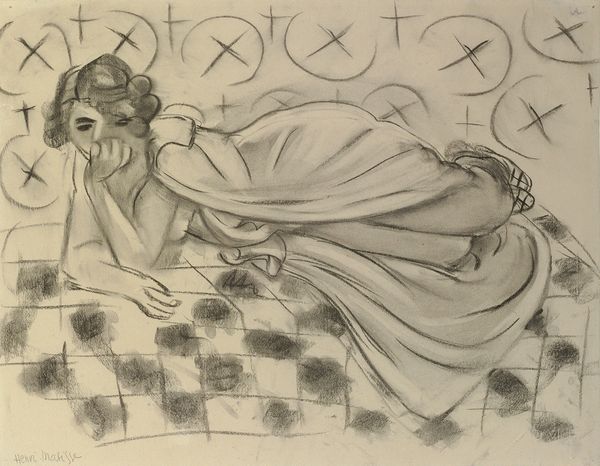 Henri Matisse made this drawing of a reclining woman, called Repos sur la banquette, using what looks like a graphite pencil. The marks have a provisional, searching quality, like he's working out the shapes as he goes. Look at the way he renders the fabric of her dress, it’s all light and shadow, with some areas left almost blank, giving a sense of volume without a lot of detail. Then there are these wonderfully patterned areas of her dress, drawn with little flicks of the pencil that are almost like musical notes. This combination of detailed pattern work with plain areas allows the eye to move all over the work with ease, never getting stuck for too long in any one place. This is something you see a lot in Matisse’s work, this incredible ability to distill form down to its essence while still retaining a sense of sensuality and liveliness. Think about what it means to rest, the way he has captured this moment of relaxation and repose is pretty unique in art, isn't it? Like a Morandi painting, it’s hard to say what it means, but you feel it when you see it.