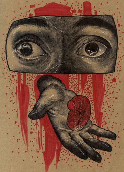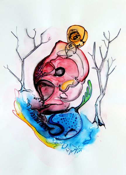 Milos Pavlovic’s drawing, 'Birth', is made with simple tools and materials, but it isn't a simple image; it's one that invites contemplation. The muted palette of browns and reds adds a layer of introspection, and you get the sense that the process of layering the marks, must have been a very personal one for the artist. Look at the details on the head, made of up hands and fingers. Each one is rendered with such care, creating a contrast between realism and the surreal nature of the overall composition. The blood-like splatters across the background, are they birth or death? The spiral at the base is a nice touch too, adding this sense of motion and transformation. Pavlovic’s drawing reminds me a little of the surrealist explorations of artists like Remedios Varo, who also delved into the connections between body, mind, and the natural world. What I appreciate most is its openness to interpretation, its resistance to easy answers.