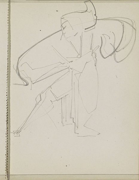 Reijer Stolk made this drawing of a dancer in traditional costume at an unknown date. This sketch is all about the dance of the line. The artist has used a pencil or crayon to create a flurry of marks, some dark and decisive, others light and exploratory. There's a real sense of movement, like Stolk was trying to capture the energy of the dancer in real-time. The lines aren't precious or overly careful, they’re full of life! I'm drawn to how Stolk uses line to suggest form and volume without fully defining it. Look at the dancer's head, it's just a few loops and angles, but you still get a sense of the shape and tilt. It reminds me a bit of some of Picasso’s sketches, where he's distilling a figure down to its most essential gestures. It's like Stolk is saying, "Here's the essence of the dancer, catch it if you can." And isn't that what art is all about, really?