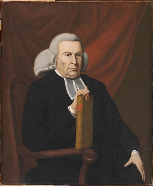 Editor: This is a portrait of Edward Wigglesworth, painted by James Reeve Stuart, though the date is unknown. The stark contrast between his white wig and dark robes feels very formal. What do you see in this piece? Curator: I see a portrait deeply embedded in the power structures of its time. Consider the context: Wigglesworth was a Hollis Professor of Divinity at Harvard. Editor: So, his clothing signifies that status? Curator: Precisely. The portrait isn't just an image; it's a carefully constructed representation of authority, class, and the role of religious institutions in colonial society. The somber tones reinforce this seriousness. It begs the question, who was this portrait for, and what message was it intended to convey about Wigglesworth's position? Editor: I hadn't thought about it that way. It gives the portrait a whole new layer of meaning! Curator: Indeed. Examining the portrait in light of social and historical power dynamics really unveils the artwork’s complexities.