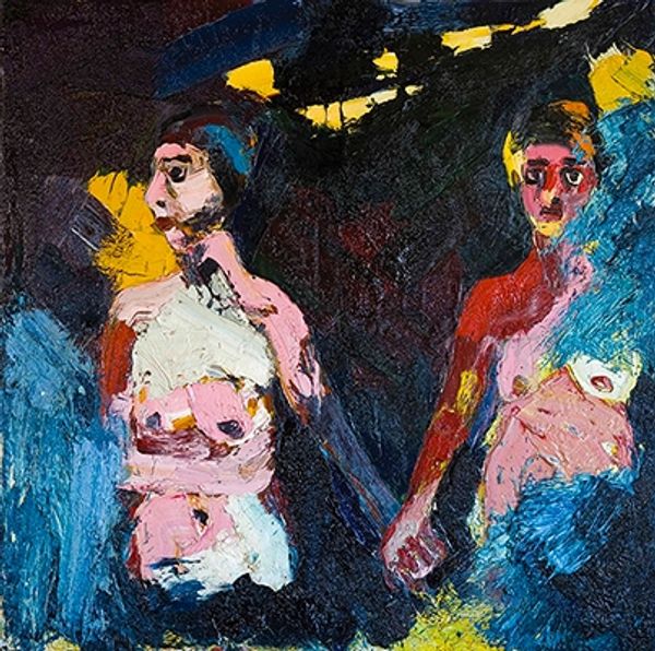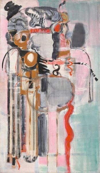 Curator: Take a moment to observe "Salambo" by Vlada Ralko, created in 2010 using oil and acrylic paint. Editor: The overwhelming green background is certainly… something. It feels oddly confrontational against the almost delicate rendering of the figure. Curator: That confrontation may be intentional. Ralko's process often involves layering and obscuring, a palimpsest of meaning related to gender and political commentary embedded in each brushstroke. The aggressive background fights for dominance with the posed figure. Editor: You see that conflict echoed in the figure itself. Notice the distortion in the figure's posture, the angles of the limbs, and how the paint seems roughly applied in those areas, contrasting with the face which almost resolves into a more refined expression? Curator: I agree, the contrast is critical. Consider the potential message behind these conscious applications of materials—thick paint versus thin washes. The face draws the eye. This invites an exploration of identity set against an increasingly globalized and digitized context, which leads to disposable images and objectification of women. Editor: Objectification but with agency, perhaps. The sitter isn’t passive. There's a self-aware, almost challenging gaze. I read the distorted body as a kind of armour or maybe a defense, built using line and color, pushing against those gazes. Curator: So, the figure is actively constructed, both by the artist's hand and through its resistance to societal pressures? This makes sense. It seems Ralko is making a commentary of women who construct their bodies with adornment. Editor: Precisely! The form, though fragmented, is actively claiming its space in the composition—or perhaps demanding it of us as viewers, using it as a form of survival in difficult socio-economic conditions and male domination, something of the female figure's resilience. Curator: It is fascinating how focusing on the material application reveals a narrative of labor, consumption, and resistance that informs and enriches our viewing experience. Editor: Absolutely. The formal elements aren't just aesthetic choices, but vital pieces of the narrative, shaping how we perceive the emotional and conceptual core of “Salambo."