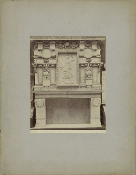 Curator: Ah yes, "Deel van het portaal van de Kathedraal van Aulnay," circa 1875-1900, a gelatin-silver print by Adolphe Giraudon, housed in the Rijksmuseum. What strikes you initially about this image? Editor: Well, the textures are amazing. You can almost feel the roughness of the stone. What’s interesting to me is how this photograph almost becomes a document of labor and skill that went into making the Portal of Aulnay. How would you interpret it? Curator: Precisely! I’m drawn to the materiality. Notice the photograph's stark contrast highlighting the carving’s textures, which underscores the labour-intensive processes involved in creating Romanesque architecture. It pushes us to consider the social conditions, perhaps feudal relationships, that facilitated such construction. We need to acknowledge the extraction of stone, the masons' expertise, and the organization of their workforce. Editor: So you're saying the photo is not just a representation, but also a trace of all these elements? Curator: Absolutely. Consider the context: the late 19th-century fascination with cataloging architectural heritage using photography. Photography allows for the broader distribution and consumption of architectural details previously confined to a specific location. Look at the careful framing; it transforms a functional part of a building into a portable art object for study or collection. The photograph shifts our perception from devotional space to an object of art historical inquiry. Editor: I see your point! It kind of disconnects the architecture from its original function, almost like an artifact removed from its site. Curator: Yes! It allows for a new form of consumption: an engagement that is mediated, aestheticized and potentially abstracted from its socio-religious roots. What new meaning do we assign these now portable portals? Editor: This is great. I'll never look at architectural photography the same way again! It’s a lesson in both material culture and labour practices. Curator: Indeed! And how the technologies used to record it change its meaning over time.