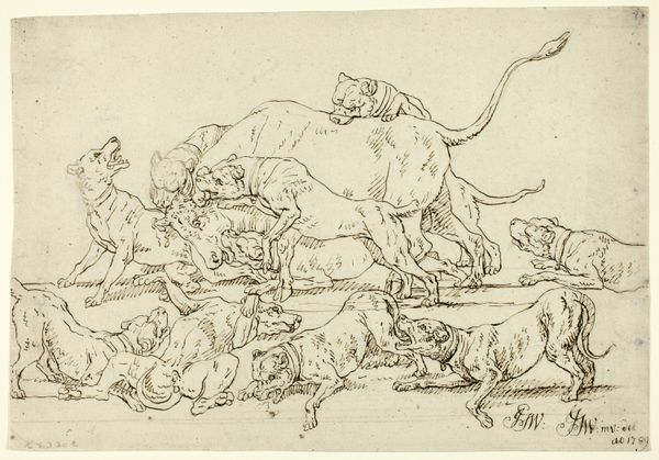 This is a pen and ink drawing by Frans Snyders, depicting lions and dogs attacking two deer and a pig. Snyders was a Flemish artist working in the 17th century, a period when the social hierarchy was rigid and hunting was an aristocratic privilege. Images of the hunt such as this, were more than just depictions of animals, they were often allegories of power and dominance. Snyders worked for the elite, and this drawing might reflect the brutal realities of power in his time, with the strong preying on the weak. It's not merely a scene of nature but a commentary on the social order, where certain groups, like the aristocracy, held unchecked authority. To fully appreciate this work, we need to understand the social context of 17th-century Flanders, the role of the aristocracy, and the visual language used to convey power. Historical documents, aristocratic archives, and studies of Flemish art from this period can all offer insights. Art is always shaped by the world in which it is created.