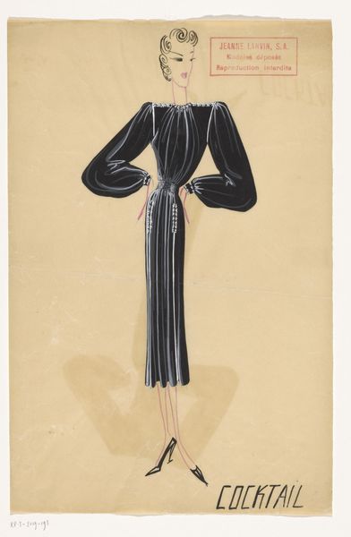 László Moholy-Nagy made this costume design for Tales of Hoffmann using gouache, ink, and pencil. You can see the process in the way he’s laid down these flat, graphic marks. I love how the stark black of the suit is offset by the delicate, almost ghostly rendering of the figure's face and hands. Look closely at the way the black paint seems to both absorb and reflect light, giving the costume a kind of depth and presence. And the small details, like the sharp white line cutting across the chest or the splash of red at the throat, really make the whole thing pop. It's like he's playing with flatness and depth, light and shadow, all at the same time. I am reminded of Sonia Delaunay's explorations of colour and form in her textile designs. It's a reminder that art is always a conversation, a push and pull between ideas, materials, and experiences.