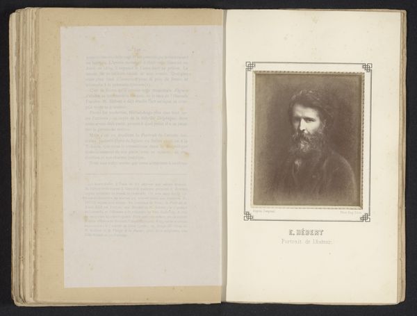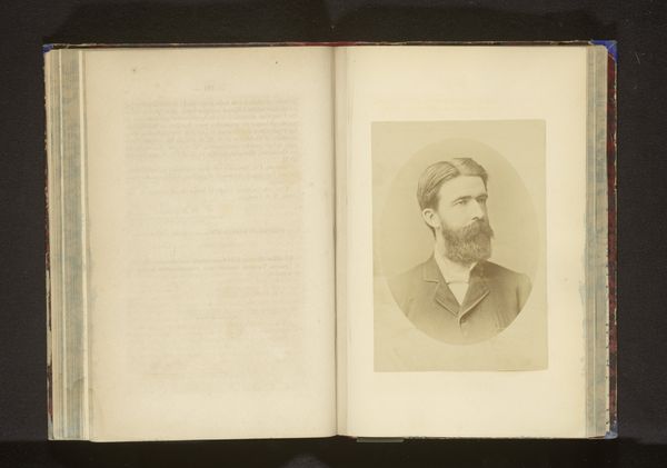 Curator: We're looking at "Portret van een onbekende man, mogelijk J. Linck," a photographic portrait from before 1892 by S. Linck. Editor: My immediate reaction is to the remarkable tonal range. The greyscale transitions are so delicate, almost painterly for a photograph. It speaks of incredible care in both composition and process. Curator: The portrait format during this era was deeply embedded in social hierarchies. Consider the sitters: often members of the bourgeoisie, positioned to project status and respectability through formal attire and posture. This is also reflected through its very presence within the photo album—serving almost like a family's symbolic capital. Editor: That's interesting, because on the formal level the high collar and tightly buttoned jacket create a vertical linearity echoed by the long beard. He is presented very much framed by geometric severity softened by the flowing hair. The subtle chiaroscuro adds dimension, bringing out character and warmth amid the composition's restraint. Curator: This image may invite a look into 19th-century conceptions of masculinity—what was communicated through dress, facial hair, and demeanor? Were certain forms of dress expected of gentlemen or professionals, reinforcing class distinctions but also internalised self-governance? How much control did this person actually have in its depiction? Editor: Certainly, even in photography of the time, the image remains manipulated through lens, light, and angle, crafting idealization, not absolute accuracy. However, I find beauty here also in this surface examination. The grain, the play of shadow, are intrinsically evocative even if the sitter’s real essence remains just beyond reach. It is within those aesthetic qualities themselves that an alternative, richer understanding opens up. Curator: Thinking about materiality adds another layer. This is an albumen print. What meaning might it carry within its very existence as object? Its vulnerability to light and degradation also represents another form of time acting as cultural intervention beyond just visual perception. The emulsion’s shifting appearance mirrors fluctuating views toward both sitter and art itself over a lifespan that encompasses multiple perspectives. Editor: Indeed. Focusing in tandem allows our interpretations to unfold. Both structure and societal framework converge beautifully, creating an enriched, resonant historical artifact open to future dialogues. Curator: By recognizing social context alongside this beauty, we are encouraged towards interpretations filled with thoughtful compassion, thus ensuring continued discussion even across shifting paradigms!