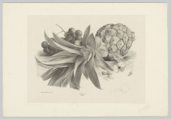Editor: Here we have Josef Löwy's "Bloemen van artisjokken," or "Artichoke Flowers," a gelatin-silver print from around 1875-1900. There's a stark beauty in these flowering artichokes; they're almost alien. What story does this still life tell, or is it simply a study in form? Curator: Löwy was a successful studio photographer in Vienna. What I find fascinating is how he takes this seemingly commonplace subject and elevates it through the photographic process. Still life photography at the time was often about control – shaping perception to communicate very particular cultural values related to the home and nature. Editor: So, it's about more than just pretty flowers? Curator: Absolutely! Consider the time: the rise of industrialization and urbanization created a yearning for simpler times, a connection with nature. Photography played a key role, offering curated views of the natural world – views, importantly, often consumed in the domestic space. Löwy’s artistry transforms edible buds into powerful objects. Editor: That makes me look at it differently. It’s not just an artichoke anymore; it represents something more, something about that period's values. What are your thoughts on why artichokes in particular, were chosen as a motif? Curator: That's an intriguing point! The artichoke, with its layers and hidden heart, is ripe with potential symbolic meaning. It may imply a narrative about nature's beauty as much as the hidden aspects that make up nature's wonders. Ultimately it invites reflection and appreciation for the complex character of these unusual blooms. Editor: So, Löwy wasn't just taking pictures; he was participating in a broader cultural conversation. I see a different dimension to the piece now. Thanks for that insightful analysis! Curator: My pleasure. It highlights the profound interconnection between art and its social setting.