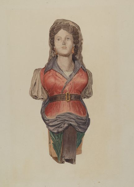 Walter Hochstrasser made this piece called, "Cigar Store Figure," using what looks like watercolor or gouache on paper. What strikes me is the precision of the rendering, yet there's a playfulness too. Look at how the red of the pants graduates in tone, suggesting a rounded form. Notice how the gold trim on the jacket catches the light. It's as if Hochstrasser is describing not just the figure, but the way light interacts with it. The paint is applied in thin washes, allowing the paper to breathe and give the image a luminous quality. But it's the mustache that really gets me, like a proud exclamation point on the face. Hochstrasser seems to have had a sense of humor, a twinkle in his eye. And maybe, just maybe, he was winking at the viewer. The piece reminds me of work by Red Grooms, with its colorful, cartoonish sensibility. Art is always talking to itself and creating ongoing conversations across time.