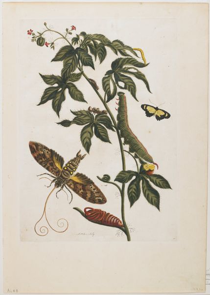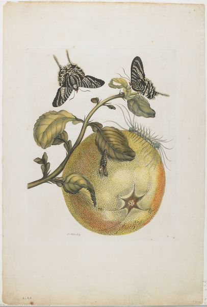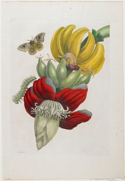 Large, colorful insects such as this blue Morpho deidamia (Hüber) were highly prized by early natural history collectors. Merian illustrated the insects on a branch of the Barbados Cherry, a plant native to Suriname.