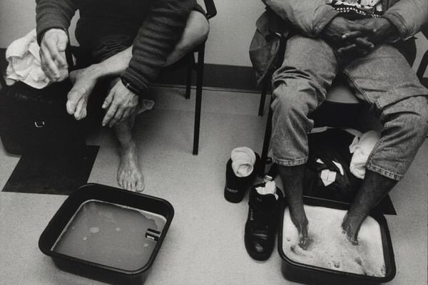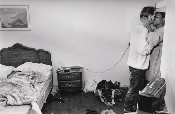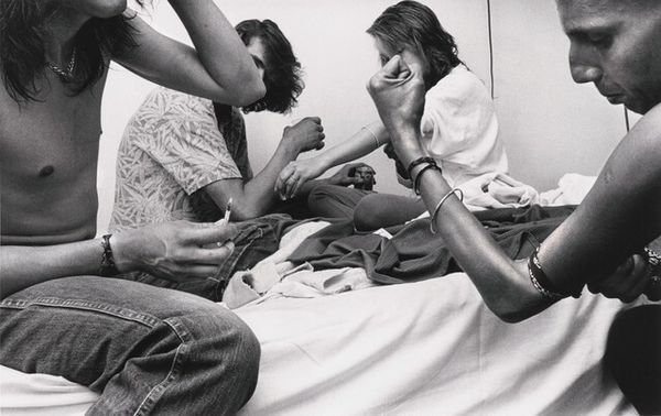 Jim Goldberg made this photograph, Playing With Shaving Cream (Ziggy, Dave, and Echo), using photography. The greyscale tones create a scene that is both intimate and unsettling, like a memory half-forgotten. The surface is filled with detail, but the light is such that much of it feels obscured. Look at the way the tones around the TV blend together. The objects in the room appear to almost merge with one another. I'm struck by the way the composition is anchored by the TV set, around which the figures are arranged, like a modern still-life. The room is messy, but the details are rendered with such care. The shaving cream itself could be read as an exercise in mark making, a moment of spontaneous creative expression that cuts through the dreariness of the scene. Goldberg is interested in the process, the way the image unfolds through the chemical processes of development. This photograph reminds me a little of Nan Goldin's work, both artists have a talent for finding beauty in the everyday. Ultimately, this piece is not about answers but about posing questions.