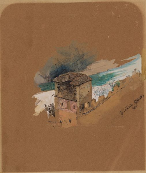 Editor: Here we have Mstislav Dobuzhinsky’s watercolor drawing, "Pskov. Fish market at the foot of the cathedral," created in 1923. It's quite striking how the stark marketplace contrasts with the imposing architecture of the cathedral in the background. What aspects of this artwork do you find most compelling? Curator: I’m immediately drawn to the materiality of the piece. The paper itself, its tone, and the way the watercolor sits upon its surface tell a story. Dobuzhinsky isn’t just representing a scene; he’s using the limitations and possibilities of the medium to comment on the harsh realities of post-revolutionary Russia. The bareness, the muted colors... consider the availability and quality of art supplies at the time, and how that would influence the final product and, by extension, the message. Editor: So, you're saying the medium becomes part of the message itself? Curator: Precisely! The sketch-like quality, the almost unfinished appearance, could reflect the disruption and scarcity that permeated daily life. Look at the fish market; the tables are roughly depicted, almost temporary, hinting at unstable economic structures. The watercolor, typically associated with delicate landscapes, here conveys a sense of rawness and practicality. Even the artist's choice of depicting the marketplace at the foot of a cathedral brings questions to mind – does the artwork express tensions of pre-revolutionary traditions collapsing in an increasingly industrialized soviet world? Editor: I see. It’s fascinating to consider how something like the choice of watercolor, or the way it's applied, can reflect broader societal conditions. So it’s not just about the beauty of the artwork but what the process and materials say about the world it came from? Curator: Exactly. By examining the means of production and material choices, we gain insight into the artist’s engagement with their social and political reality, making this cityscape far more than just a picturesque view. Editor: That really shifts my perspective! I'll definitely look at materiality in new ways now. Curator: Wonderful. That is what looking closely at art is all about!