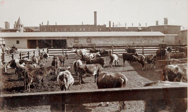 Curator: Looking at this gelatin silver print from between 1940 and 1945 titled, “Boeren op een kar met koeien en paarden steken treinrails over,” I’m immediately struck by the weight of the moment, not just literally with the cart, but also symbolically. It feels like history caught mid-stride. Editor: The black and white aesthetic, along with the landscape, certainly speaks to a kind of rustic existence. It conjures images of disruption, of displacement, but also of the perseverance of people clinging to simpler means of living amidst, I presume, the modernization signified by the presence of the railway tracks. Curator: Precisely. The image becomes this compelling juxtaposition of the agrarian and industrial, but there's a quiet strength, a dignity in the way the farmers traverse these imposing rails. They’re not overwhelmed, they simply adapt, and keep moving forward, right? You get the sense this crossing is part of a familiar journey. Editor: Yes, a resilience that can also read as resistance. The animals, the cart, the families dressed in what could be their traditional clothes… They are staking their claim, aren't they? Literally taking up space against a backdrop that could be pushing them out. Are those tensions palpable in this frozen frame, do you think? Curator: Without a doubt. And to imagine the everyday sounds--the creaking of the cart, the animals' hooves, juxtaposed against the looming potential of the train… I wonder about the untold stories packed into that cart. This unnamed artist managed to create an evocative portrait of a time of immense transition. Editor: Agreed. It's the way the scene resists any sense of the picturesque. It’s more ethnographic record that also manages to express, somehow, this almost subconscious form of resistance. A powerful quiet statement, caught on gelatin. Curator: It prompts one to look deeper, to feel the complexities of lives caught at the intersection of tradition and modernity. What initially feels like a simple genre painting reveals so much about resilience, doesn't it? Editor: Absolutely. This photograph makes me consider our contemporary moment. What tracks are we being asked to cross, and how are we continuing to navigate those shifts, clinging to the values and lifeways that matter?