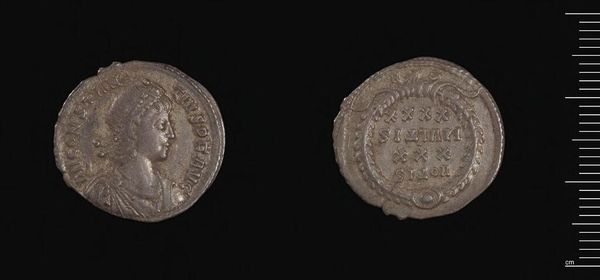Curator: What strikes me about this coin, the Aspron Trachy of Andronikos I, is its rough, almost crude form. The silver looks hastily worked. Editor: Indeed, the lack of precise delineation in the figures creates an immediate sense of urgency and perhaps instability, formally mirroring the turbulence of Andronikos’ reign. Curator: Exactly. Andronikos, though of noble lineage, seized power through popular revolt, presenting himself as the champion of the common people against the aristocracy. This coin, with its imagery of Christ and, on the other side, Andronikos himself, was a key tool to cement his authority. Editor: The flattened, almost two-dimensional rendering of the figures emphasizes their symbolic presence over any realistic depiction. Look at the lines of their garments; they denote form rather than describe it. Curator: It’s a fascinating object—a small piece of metal that speaks volumes about power, legitimacy, and the volatile politics of the late Byzantine Empire. Editor: It prompts us to consider the visual language of authority when realism is sacrificed for the sake of immediate impact.