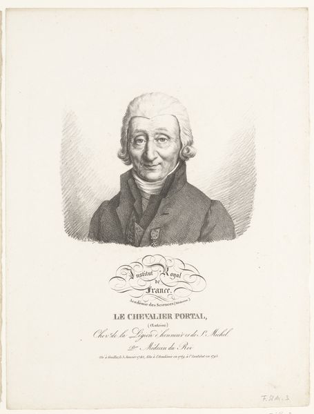 Editor: Here we have Julien-Léopold Boilly's "Portrait of the Naturalist Bernard Germain de Lacépède," an engraving from 1820. I'm struck by the precision of the lines. It feels almost mass-produced, yet detailed. How should we interpret this portrait? Curator: Consider the engraving process. It allowed for reproducibility, enabling the wider distribution of Lacépède’s image, but the level of fine detail still demanded skilled labor and time. How do these things influence our understanding of the subject’s status and the context of this artwork's creation? Editor: So, the material process itself elevates Lacépède and makes the image accessible. Was this accessibility an attempt to bridge the gap between the elite and the broader public, showcasing enlightenment figures? Curator: It’s crucial to examine how printmaking democratized images but remained constrained by socio-economic realities. The artist is creating a portrait using a printing medium. How might these engravings circulate, who had access to them, and what impact did the industrializing processes of printmaking have on the valuation of this and other portraits? What effect did the means of production have on the artistic integrity of the portrait? Editor: Interesting point. The material constraints and possibilities really shaped the social reach and impact of the work. I guess I hadn’t thought about how industrial processes would interact with art in this way. Curator: Exactly. By analyzing the medium and the economic context, we understand how seemingly straightforward images participated in complex social dynamics. Hopefully now you will think of process and production differently.