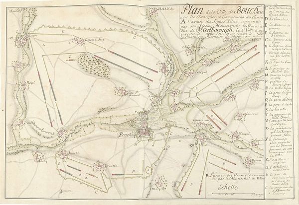 This is a plan of the Siege of the Citadel of Antwerp, made in 1832 by Jan Oomkens. It’s an engraving, an intaglio printmaking technique where lines are incised into a metal plate, then filled with ink to transfer the image onto paper. Consider the nature of this choice. Unlike a painting, which presents a unique artistic vision, an engraving like this suggests a different kind of value. It's a mechanically produced image, meant for dissemination. Its lines are clean and precise, prioritizing clarity and accuracy. The map itself is less about artistic expression and more about conveying information for military or strategic purposes. This method of production speaks volumes about the social context of the time, with industrialization making it possible to reproduce images and texts efficiently. The engraving thus becomes an instrument of power, useful for managing and understanding the world, and projecting military might. So, while this may seem like just a map, it reflects a significant shift towards mass production and the increasing importance of information in shaping society.