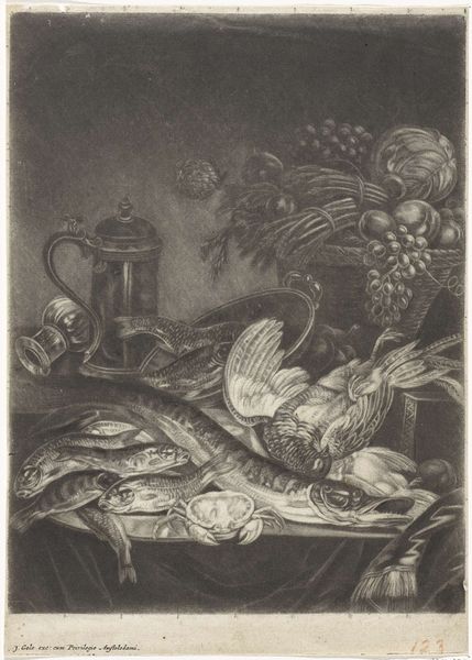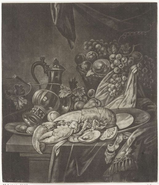 Abraham van Beyeren captured this sumptuous still life with oils on canvas. The lavish display of lobster, fruit, and ornate vessels speaks to the Dutch Republic's prosperity and its citizens' aspirations. The lobster, prominently placed, has journeyed through time as a symbol, appearing in Roman mosaics as a sign of luxury. Yet, within Dutch still life, it also carries a memento mori—a reminder of life's fleeting nature. The fleshy delight is a subtle commentary on vanity. Consider the precarious balance of objects: ripe fruit verging on decay, precious metals reflecting light with transient brilliance. These elements subtly remind us of our mortality, a theme that resonates deeply within the collective psyche, echoing through centuries of artistic expression, from ancient vanitas to contemporary explorations of consumer culture. The enduring power of the still life lies in its ability to engage us in a dialogue between indulgence and reflection.