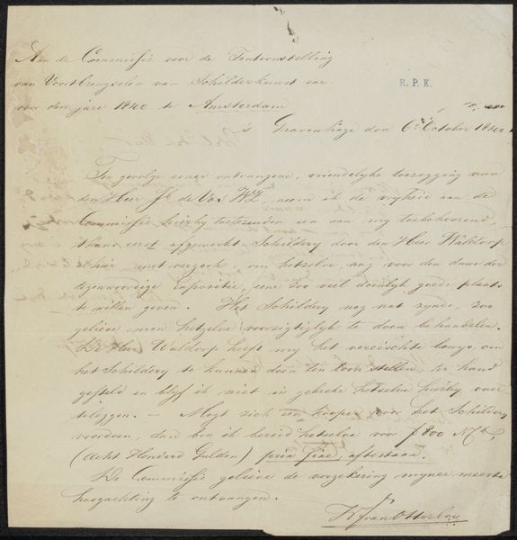 This letter by Barend Cornelis Koekkoek, currently residing in the Rijksmuseum collection, was produced on January 30, 1840 in Cleve, Germany. The material is paper, an invention that by this time had spread throughout Europe. Paper has a material and social history; once precious, by the 19th century it was widely available as a product of industrialization. This availability afforded a democratization of the written word, and in turn its production. Koekkoek’s penmanship shows off a virtuosic skill with the quill, a technology that had existed for thousands of years, but which was reaching its twilight. The writing itself gives insight into the Dutch art world, and its modes of exchange. It speaks to the network of artists, commissioners, and administrators that shaped the cultural sphere. Though the means of production here might seem simple—just paper and ink—they are tied to wider social issues of labor, politics, and consumption. This letter is a reminder that even the most seemingly straightforward works are embedded in complex economic systems.