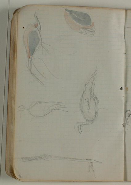 Curator: What we have here are sketches by Niels Larsen Stevns, likely from around 1900-1905. These pencil drawings, entitled "Skitser af traner," or "Sketches of Cranes," are on paper, and they're a peek into the artist's process. Editor: Immediately, there’s a lovely sense of capturing a fleeting moment. You can almost feel the air around the birds as they're taking shape. It’s that sketch-like quality – the imperfections almost bring a vibrancy. I imagine the hand of the artist at work on the move. Curator: It is exactly that! Stevns, rooted in the Impressionist tradition, really emphasizes observation and the momentary. This page seems ripped right from a sketchbook. What’s also interesting here is his medium of choice, pencil. Often used for preliminary studies, Stevns elevates it, granting us an intimate view into his initial vision. Editor: I love your calling attention to the paper as a kind of canvas itself here. Because really, Stevns is just putting marks onto a readily available material support, the most accessible medium around to quickly map out space, movement, and volume. Were studies like these common at the time? How might have other sketches or studies of cranes factored into design or industrial processes in the same period? Curator: Yes, sketchbooks from this time are ripe with nature studies - especially ones rendering wildlife - this impulse tracks broader social concerns surrounding industrialization that began reshaping European culture in the 19th century, prompting both scientific inquiry into and deep appreciation for what the romantics considered a vanishing or fading world. Editor: So true. And there is a certain kind of luxury latent in these pages too. These kinds of pencil and paper marks index the relationship between nature, technology, and commodity, inviting us to reflect on the social conditions that permitted a Danish artist to produce sketches like these, what’s on offer today at the SMK – Statens Museum for Kunst in Copenhagen. It really encapsulates Stevns’ unique position in time. Curator: Absolutely. These sketches are far more than just studies; they are embodiments of an era, offering insight into the material conditions of making at a critical moment.