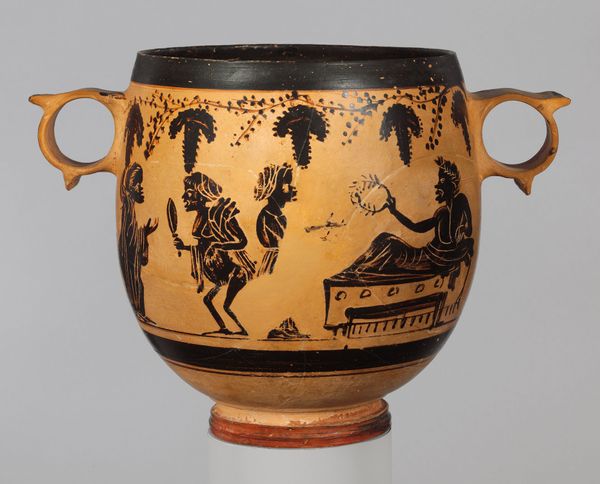 This terracotta Lebes Gamikos was made by an Ancient Greek potter for use in wedding ceremonies. The scenes painted on its surface give us a glimpse into the rituals and social expectations surrounding marriage in ancient Greece. The red-figure technique, with its emphasis on detailed forms against a black background, enhances the narrative quality of the imagery. The vase depicts the giving of gifts and the solemnity of the bride's preparation. It speaks volumes about the social and familial structures of the time. Ancient Greece was characterized by patriarchal norms, where marriage served to ensure the continuation of lineage and property. The iconography on this vase suggests the importance of women's roles in society, even within the confines of the domestic sphere. Historians use a range of resources to interpret such artifacts, including ancient texts, archaeological findings, and comparative studies of similar objects. By considering these sources, we gain a fuller understanding of the cultural significance of this wedding vase and the complex social dynamics it reflects.