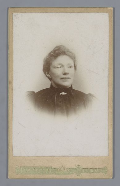 Editor: This gelatin silver print, a "Portrait of an Unknown Woman," likely taken between 1870 and 1895 by R. Barthel, is striking in its stillness. There's a certain weight to it, a sense of solemnity, almost…stodginess. What do you see in this piece? Curator: Oh, stodginess! I adore that word here! It encapsulates so much of what the burgeoning middle class was striving for at the time—stability, respectability, maybe a tad more than necessary. To me, it sings of tightly laced corsets and even tighter social constraints. Look at the details; the careful embroidery, the almost severe hairstyle… do you think she chose the frame too? Editor: Perhaps! It feels like she wanted to be seen in a certain light. Did photography like this democratize portraiture at all? Curator: Precisely! While the sitter remains unknown, her portrait provides a tangible connection to a specific time, place, and class. It offers a window into the everyday lives of individuals often absent from the historical record. This work represents how photography broadened representation; it became much more accessible. Now everyone could participate in crafting and controlling the visual narrative. Editor: So, beyond just an aesthetic or art historical view, this has real sociological importance, right? Curator: Absolutely! We're not just admiring technique but eavesdropping on a silent conversation between a woman and her world. And between her and us! What is she trying to communicate through her jewelry or her hairstyle? Perhaps those items are clues we need to try to define who this person really was and the world she inhabited. Editor: It makes me think about how we choose to present ourselves today too. I initially focused on what I perceived as "stodginess," but now I’m more aware of the deliberate choices she made to craft her own image. Curator: Exactly! Seeing art, feeling art...It’s about discovering unexpected reflections of ourselves and the universal need to be seen, to be remembered, and maybe… just maybe… understood.