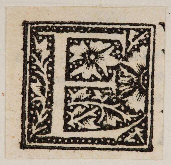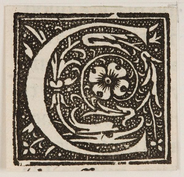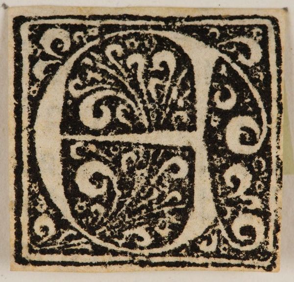 Curator: What strikes me immediately is the incredible detail for something so small. It's an anonymous work titled "Letter D" currently held at the Harvard Art Museums. Editor: Yes, it's intricate, almost obsessive! I wonder about the labor involved in producing this. The dense, swirling patterns suggest it might be a woodcut. Curator: Exactly. It’s fascinating to consider how this print functions within the history of early typography and book production. Editor: Absolutely! Thinking about who made it, where it was made, and its role in the distribution of knowledge… it opens up a whole world. Curator: It makes me want to research printing guilds and the socio-economic conditions that shaped the creation and dissemination of this seemingly simple initial. Editor: For me, it's a reminder that even the smallest artistic gestures can reveal a rich tapestry of human endeavor.
