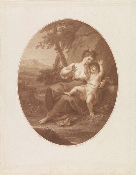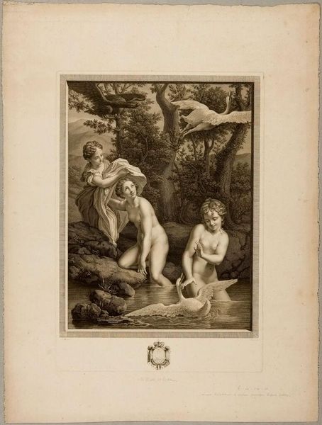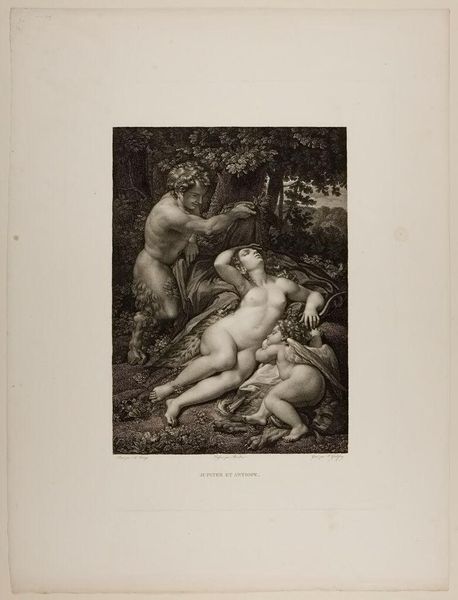 Editor: This is "Group of Boys" by Edward Smith. I’m immediately struck by how these children are arranged within what looks like a small Eden. What does this image evoke for you? Curator: The pastoral setting, coupled with the children's nudity, recalls classical ideals of innocence and unspoiled nature. It’s interesting to consider how the artist employs these established symbols to convey particular ideas about childhood, or perhaps even nostalgia. Editor: Nostalgia for what, exactly? A lost Golden Age? Curator: Precisely. Think of the visual cues the artist uses to construct this image as representative of an idealized past - a time of purity, harmony with nature, and unburdened joy. The "bubble" blown by one of the figures also refers to the fleeting nature of beauty, youth, and happiness. Editor: So it's not just a charming scene, but a meditation on time and innocence. I’ll never look at cherubs the same way!