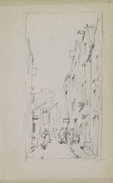 This evocative sketch of Sint Nicolaasstraat in Amsterdam was rendered by George Hendrik Breitner using graphite. Here, our eyes are drawn to the clothes hanging across the street. Across cultures, garments carry deep symbolic weight, representing identity, status, and even protection. Think of the ritualistic use of clothing in shamanic traditions. This image connects to how clothing has been used in different times and places as a symbol of transition and transformation. The hanging clothes also remind us of the vulnerability of daily life, akin to a stage where personal dramas unfold. This echoes the ancient Roman concept of "memento mori," reminding us of the transience of existence, a theme that resurfaces throughout art history. It is a subtle yet potent symbol that invites contemplation on the ephemeral nature of our own lives and the continuous cycle of human experience, echoing through time.