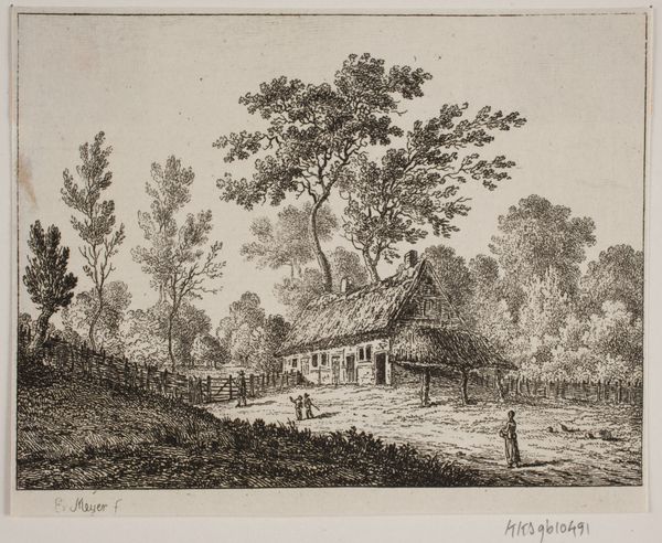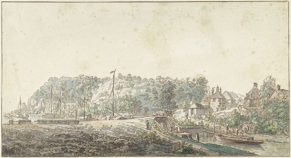 Editor: We're looking at Pieter Gerardus van Os’s "Elswoutshoek te Overveen," a watercolor on paper from 1801, currently at the Rijksmuseum. The colors are very muted, almost dreamlike. There’s a shepherd with his sheep, a rustic house, and a feeling of quiet solitude. What catches your eye in this work? Curator: Well, my dear, it whispers to me of a bygone era, a time when the world moved at a gentler pace, don't you think? Van Os captures not just a landscape, but a feeling—that gentle melancholy of Romanticism, where nature is both beautiful and a little… untamed. See how the light softens everything, almost veiling the scene. Have you noticed the almost reverential depiction of the clouds? Editor: Yes, there’s something very peaceful about the clouds. Was painting en plein air common back then? Curator: Ah, an astute observation! Painting "en plein air," or outdoors, was gaining traction at this time. Artists were leaving their studios in search of authenticity, to capture the immediacy of the natural world. I see Van Os placing himself directly into this world, into the scene – do you imagine it also? He must have relished that wind through his hair and the aroma of fertile soil in his nostrils, trying so hard to perfectly represent such a scene. Do you also imagine a light mist settling on the landscape? Editor: Definitely! It makes you wonder what the actual place looked and felt like back then compared to now. Curator: Exactly! The painting is also a product of its time; It prompts reflection on the profound shifts, transformations, and ever-fleeting impressions of life, where even the most tranquil and picturesque locations can evolve into something wholly unrecognizable. What a wistful idea! It just feels that such simple scenes can bring deep joy. Editor: It really does make you appreciate those simple moments. Thanks for pointing out those subtleties.