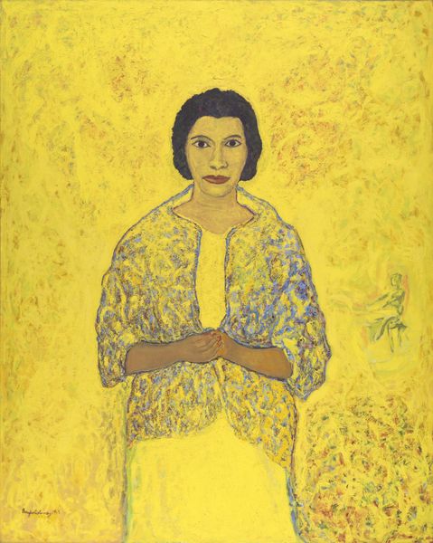 Editor: Here we have Van Gogh's "Madame Roulin Rocking the Cradle," painted in 1889, in oil. It has such a serene, almost melancholic, feeling to it, despite the bright colors. What do you see in this piece? Curator: I see a powerful statement about the often-unseen labor of women, particularly mothers. Consider the context: Van Gogh painted this while voluntarily residing in an asylum. To me, this work highlights the emotional labor involved in motherhood, particularly within the confines of domesticity. How does it challenge the traditional male gaze prevalent in portraiture of the time? Editor: I see what you mean. It's not idealized like so many portraits, it feels more real. Why repeat the floral motif on both the wallpaper and the hanging cradle? Curator: Exactly! The floral patterns link mother and child. They can be interpreted as a reference to fertility and the cycle of life. But they also point towards confinement, domestic expectations. It subtly challenges notions of female identity during that period, especially class and how social roles were viewed. Is she truly cradling, or is it just symbolic? What expectations were attached to women of this era, how do we perceive those now? Editor: That’s a powerful way to look at it! I hadn't considered the domestic expectations. It gives a completely different meaning to what I initially saw as simply a calm image. Curator: Precisely, Van Gogh used color and symbolism to expose the many complex social dynamics between family, labor, and self identity. Art allows us to look more closely. Editor: Thank you, this made me consider social expectations in relation to this painting in a new light! Curator: It's amazing how contextualizing art shifts one's perspective. Keep questioning!