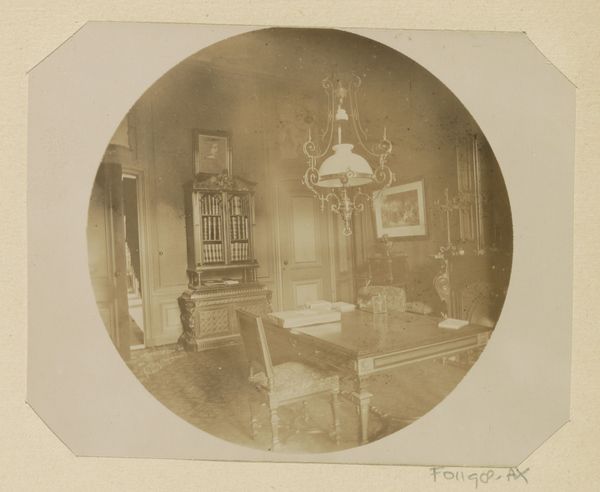 Editor: This photograph, “Interieur van het huis aan Herengracht 258, Amsterdam,” taken sometime between 1889 and 1893 by Johanna Margaretha Piek, presents a genteel interior. I’m struck by its stillness and emptiness. What do you see in this piece, considering its time? Curator: That stillness is key. Think about the rise of photography coinciding with the colonial project. Consider whose interiors were deemed worthy of documentation, and why. Piek, photographing a home on Herengracht, likely documents a space of considerable wealth and power tied to the Dutch East India Company. What does this choice of subject matter reveal about the values being preserved and projected during that period? Editor: So, the quietness isn’t just a neutral observation, it actually conceals a certain... complicity? Curator: Precisely. Look at the almost clinical precision with which she captures the piano, the chairs, the artwork above the mantle. This isn't simply recording reality. It’s constructing a very particular narrative. Who is this house for, and what kinds of activities take place within it? Where does its wealth come from? Are those questions we should be asking of even the most "peaceful" looking artworks? Editor: That's fascinating! I’d initially overlooked the implications. Seeing it as a purely aesthetic study, I hadn't considered its socioeconomic implications or who wasn’t in the room, literally and figuratively. Curator: Exactly, we need to understand whose stories aren't being told. This image allows us to see the ways photographic "realism" served certain powerful interests and how its values shaped how we remember and value the past. It also provokes questions about whether or not we should grant these objects more prominence in collections when its origins may conflict with the values that institutions are meant to champion.
