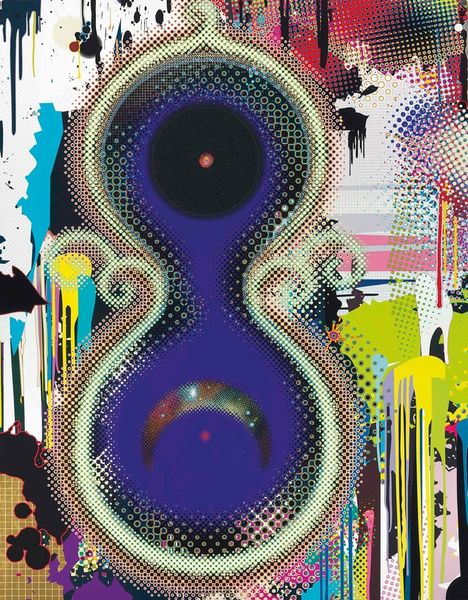 Editor: This is "Carambola" by Beatriz Milhazes, created in 2008 using mixed media including acrylic paint and textile. It’s such a vibrant piece. The circles and geometric shapes almost seem to dance on the canvas, don’t you think? What stands out to you in terms of its composition and form? Curator: The brilliance of Milhazes’ "Carambola" resides precisely in its structured dynamism. Note how the canvas is segmented into distinct zones, each hosting a different rhythmic pattern. This segmentation doesn't fracture the composition, but rather creates a layered visual experience. How does the artist establish both visual harmony and playful disharmony among all the elements? Editor: I see how the colors definitely unify it, even though there’s so much going on. It's almost like organized chaos! Can you elaborate on that harmony through visual disharmony you mentioned? Curator: Observe the repetition of circular motifs, countered by the introduction of angular forms and varying linear patterns. The colors, predominantly vibrant and high-key, are juxtaposed strategically to create visual tension, what we can refer to as simultaneous contrast, activating a strong visual impact. Would you agree this activation constructs its formal narrative? Editor: Absolutely! The contrasting shapes and colors definitely create a push and pull. So, it's not just about the pretty colors, it's also about how those formal elements are working together to create this energy. I never really looked that closely. Curator: Precisely. This dynamic interaction, wherein colors and shapes simultaneously converge and diverge, constitutes the fundamental characteristic defining her practice. Editor: Thank you. Now I see more to consider about Milhazes' technique. It really shifts how I understand abstraction in art!
