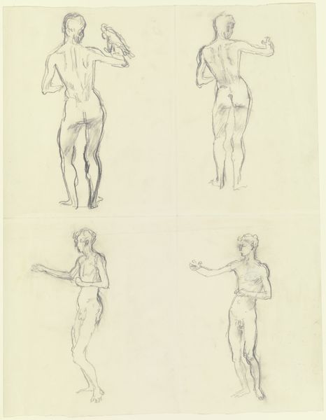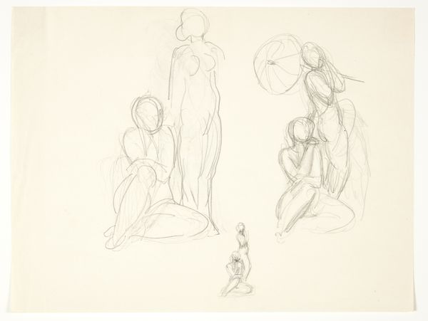 Kathe Kollwitz created this drawing, "Studienblatt: Liegender weiblicher Akt," using graphite to explore the human form. The composition presents multiple studies of a female figure, each capturing different poses and angles. Kollwitz's use of delicate lines creates a sense of vulnerability and raw emotion. The absence of harsh outlines softens the visual impact and invites contemplation. The figures seem to emerge from the paper, emphasizing the artist's focus on line and form. Kollwitz, known for her empathetic portrayals of human suffering, uses the structure of academic figure drawing to engage with themes of the body and its expressive potential. The repeated poses and variations suggest an attempt to understand the human figure through the repetitive process of drawing. This approach destabilizes traditional portraiture, focusing instead on the body's capacity to convey emotion. Ultimately, the drawing exemplifies Kollwitz's commitment to using form to explore the depths of human experience. The absence of details allows us to reflect on the universal aspects of vulnerability.