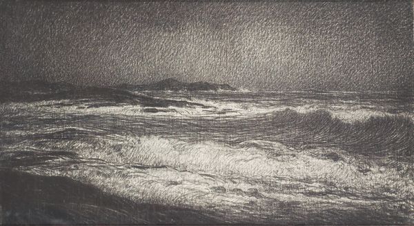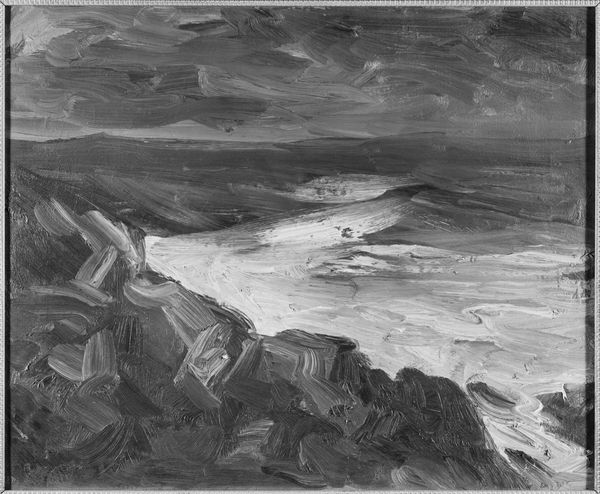Editor: So, this is "Seascape with Conical Buoy," an oil painting, artist and date are unknown, sadly. I'm really struck by the sky - it looks so turbulent. What do you see in this piece? Curator: Beyond the immediate impression of the landscape, I think it's critical to unpack what this seascape, particularly painted during a period of vast imperial expansion and maritime power, might represent. Consider the buoy, a symbol of guidance and safety, yet also of boundaries and control within a space—the sea—that's historically been both a source of life and a site of conflict. What social structures are mirrored in the rendering of this seascape? Editor: That’s interesting. I hadn’t thought about it in terms of power dynamics. It just seemed like a fairly straightforward landscape to me. But thinking about boundaries in connection to a buoy… Curator: Exactly. And what does it mean to paint this scene "en plein air?" The artist places themselves directly within this context, influenced by it, recording it, possibly complicit in it. The sea itself could be seen as a contested space, a fluid border subject to various power struggles. How can we see gender or race in this depiction, or rather, its absence? Who is omitted from this "natural" scene, and why? Editor: So, by looking at what's *not* there, we can get a clearer understanding of the work’s broader context. Curator: Precisely. It is about recognizing what perspectives have been traditionally prioritized and normalized and what perspectives have been marginalized and omitted, and then examining our own position in relationship to all that. What does this impasto technique suggest about the artist’s physical and emotional engagement? Does it suggest the artist wants to ground their artistic efforts in physical work and observation, or more likely, to signal to his upper class peers, their capacity for leisure, and to dominate “nature”? Editor: I never would have considered all those aspects, but this definitely gives me a lot to think about when approaching landscapes in the future! Curator: Yes, context transforms everything, so every act of creation needs that frame of consideration.